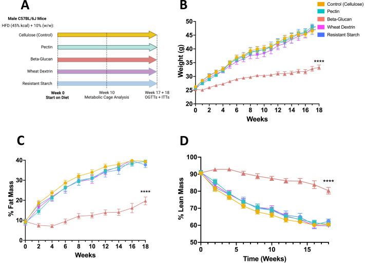 ・ベータグルカンを与えられたマウスは、体重と脂肪量が有意に減少した
