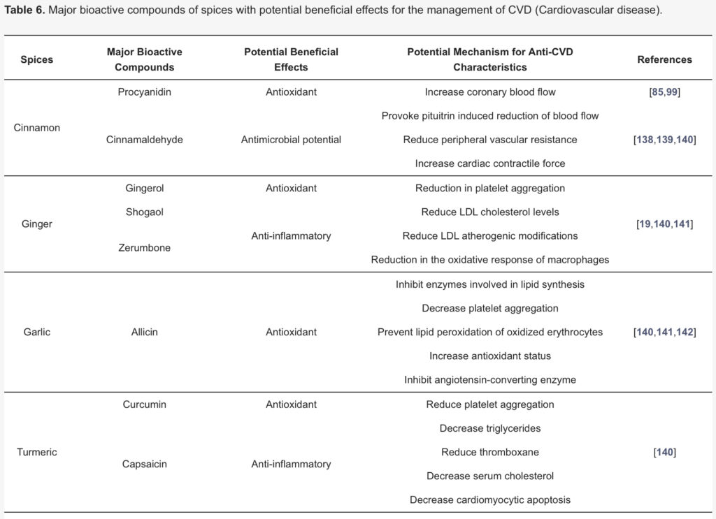 Antioxidant Activity of Spices and Their Impact on Human Health: A Review表6 より