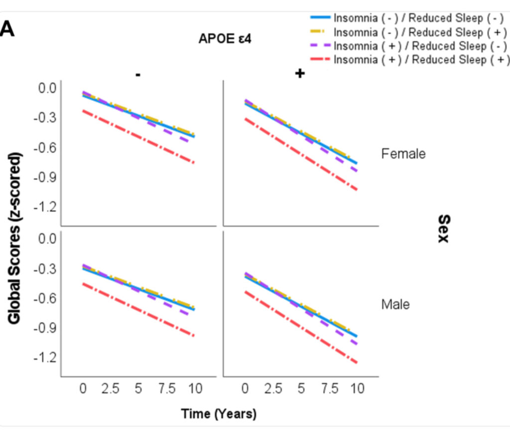 ・ApoE4遺伝子型を持つ人では、不眠による影響がさらに増幅される