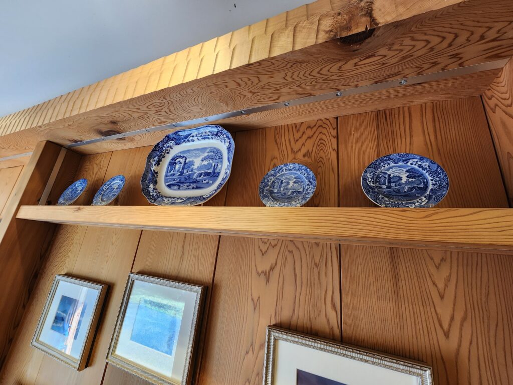 玄関にはイギリスの名窯「スポード」のブルーイタリアンがお出迎え。