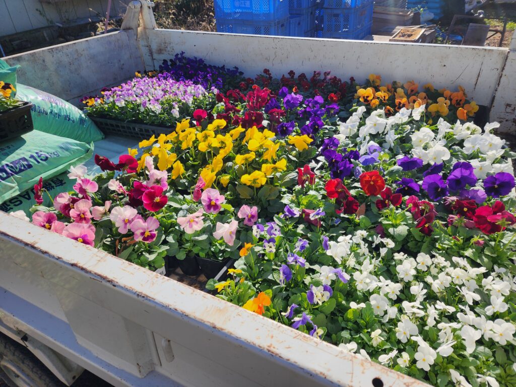 パンジーとビオラをいくつ注文し、学校のイベントの一環として花を植えていきます。