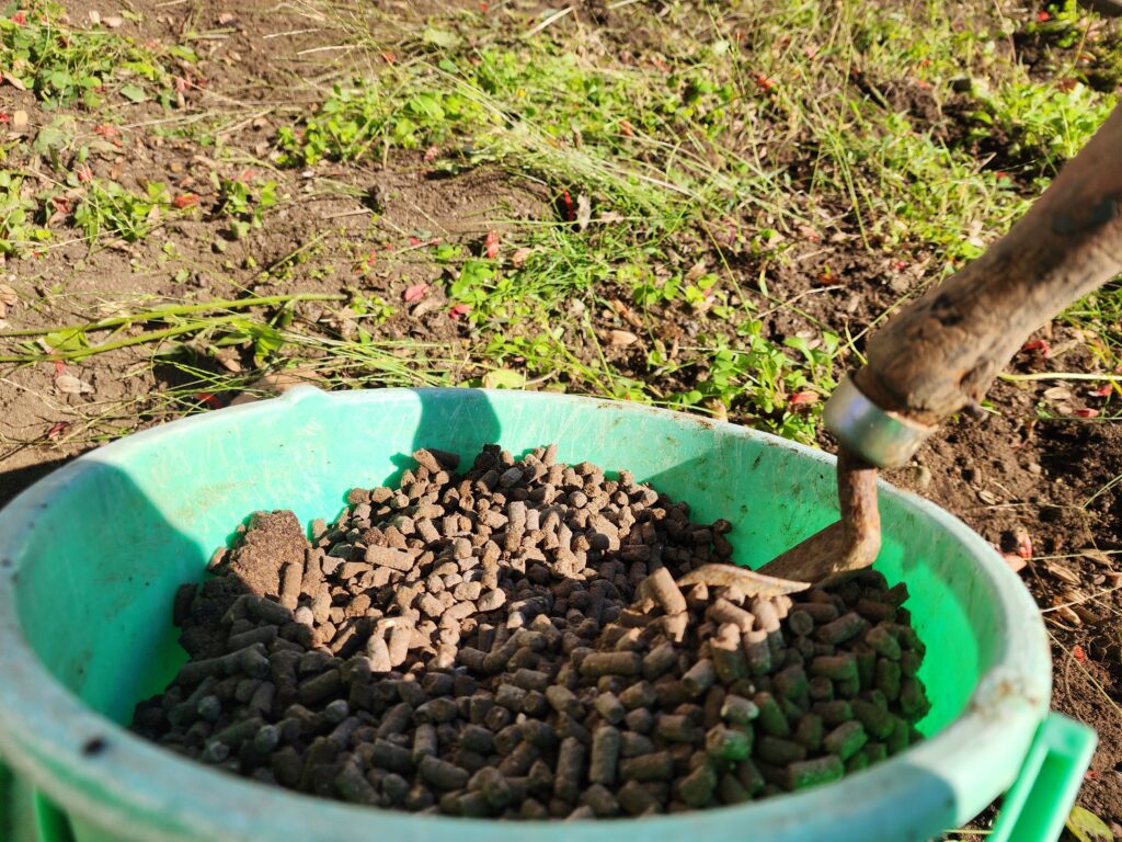 土の状態については特に指定はありませんでしたが、家に余っている肥料があったので、ついでに撒いておきます。