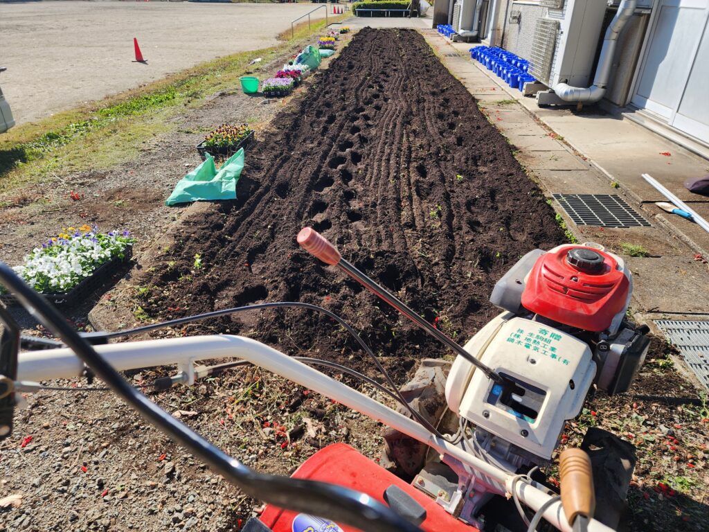 あとは学校にある耕運機で耕して準備完了!