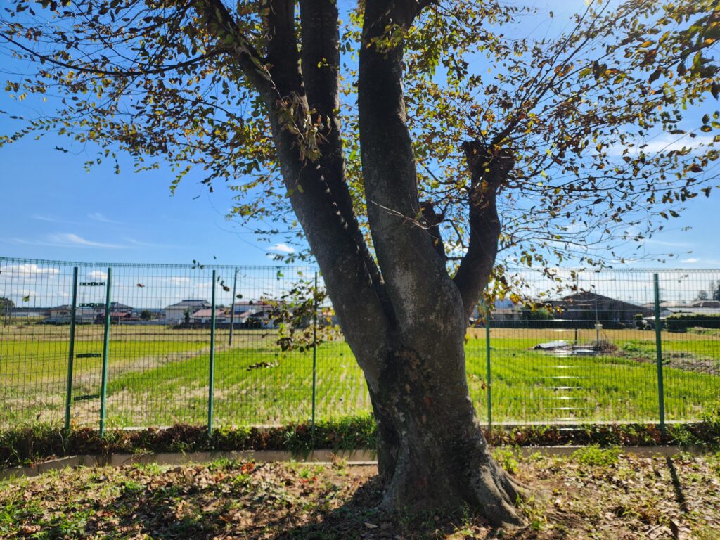 校庭の隅っこに生えている木
