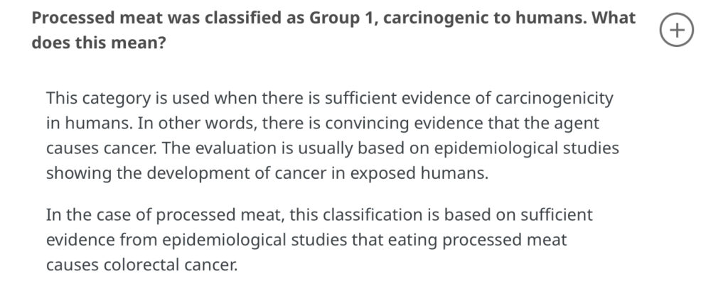 世界保健機関(WHO)傘下の国際がん研究機関(IARC)は、2015年に加工肉を「グループ1発がん性物質」に分類しました。