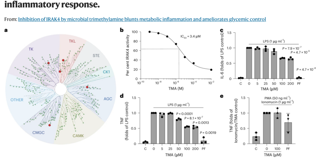 ・TMAはIRAK4の活性を抑制し、慢性炎症とインスリン抵抗性を改善する可能性が示された