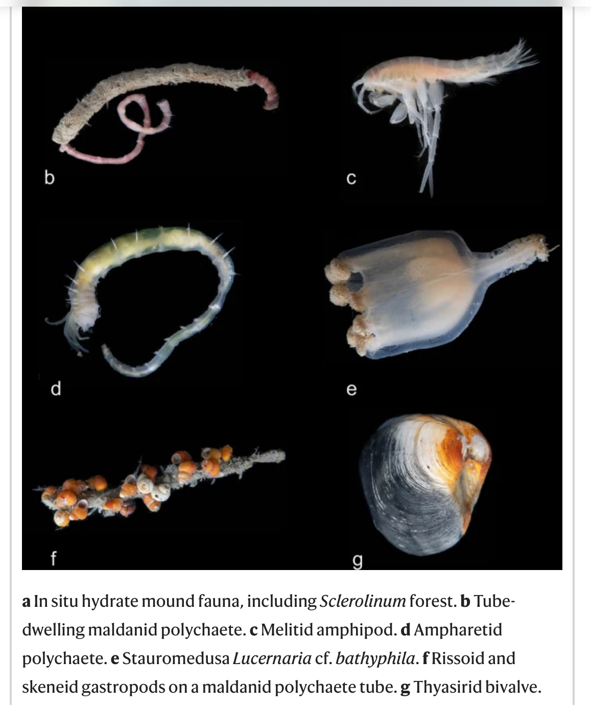 この深さでガスハイドレートが露出し、しかも活発な生命活動を伴っている例は、これまでの記録を大きく更新するものだとされています。