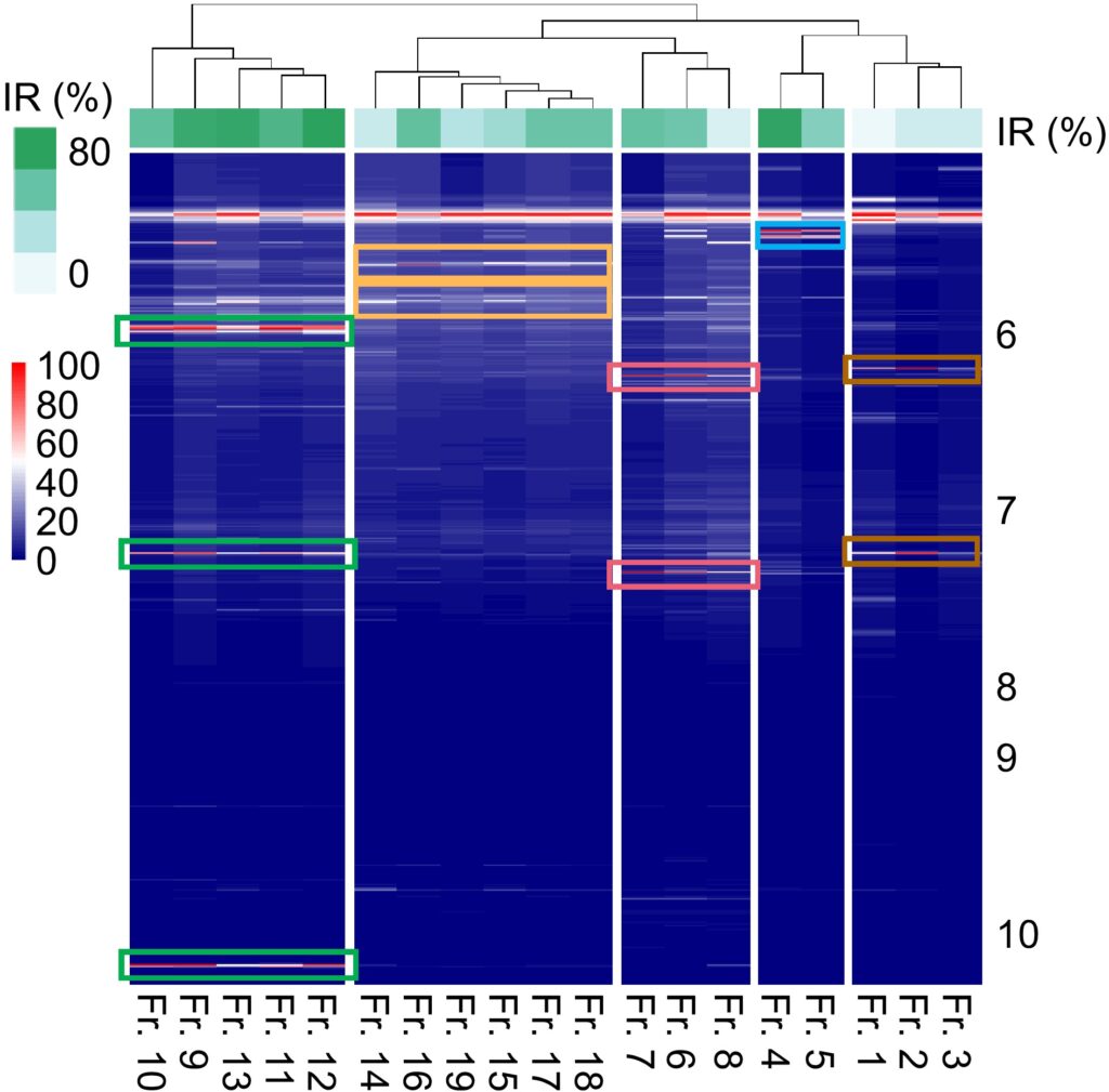 得られた分析データをクラスターヒートマップ解析にかけることで、Fr.9からFr.13の分画が特に高い生物活性を示すことが明らかになりました。