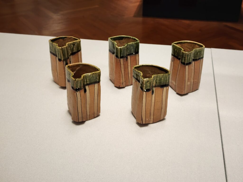 漫画「へうげもの」で有名な古田織部の影響を強く受けた織部焼などもあり、その手の人はかなり刺さる展示でした。