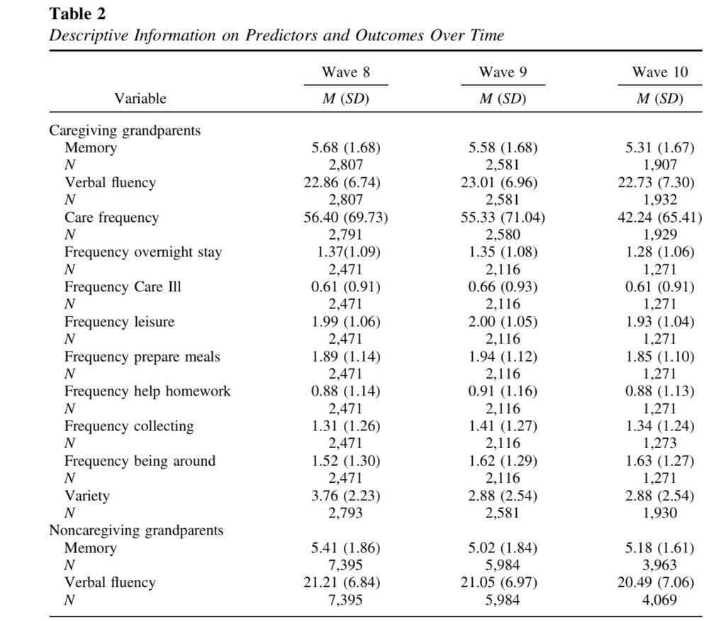 分析の結果、孫と時間を過ごしている祖父母は、世話をしていない祖父母と比べて、記憶力および言語流暢性のテストで高いスコアを示しました。