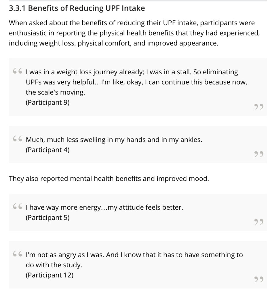 A Pilot Study of a Novel Dietary Intervention Targeting Ultra-Processed Food Intakeより一部抜粋 「停滞していた体重減少が、UPFをやめたことで再び減りはじめた。『これなら続けられる』と思えた。」