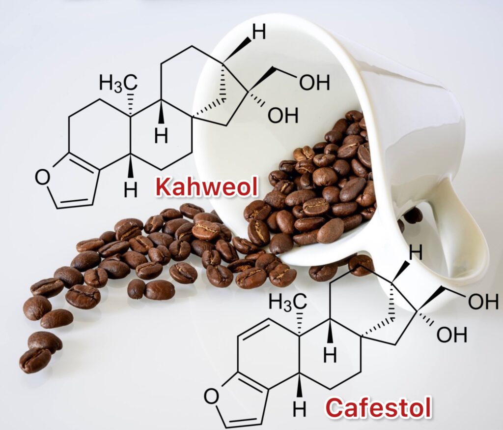コーヒーにはカフェイン以外にも、ポリフェノール類やジテルペン類など多くの生理活性物質が含まれています。