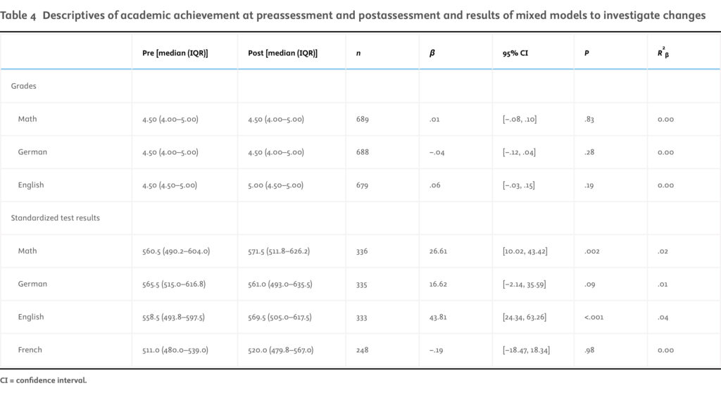 ・睡眠の質や健康関連の生活の質が改善し、英語と数学の成績も向上した