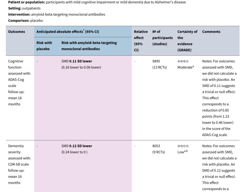 しかし今回、医療エビデンスの評価で世界的に信頼性の高いコクランが、これらの薬剤を含む複数の抗アミロイド薬について包括的な検証を行いました。