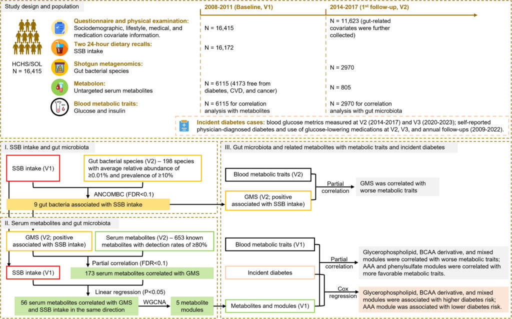 今回、Cell Metabolismに掲載された最新研究では、腸内細菌とその代謝物が、砂糖入り飲料と糖尿病リスクの関係を媒介する可能性が示されました。