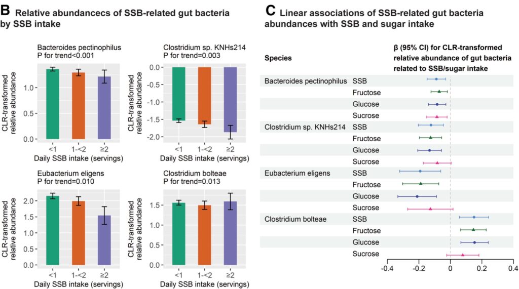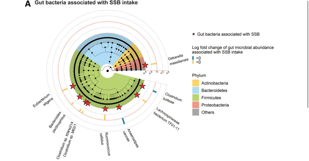 Sugar-sweetened beverage intake, gut microbiota, circulating metabolites, and diabetes risk in Hispanic Community Health Study/Study of Latinosより • 短鎖脂肪酸産生菌の減少傾向(※一部)