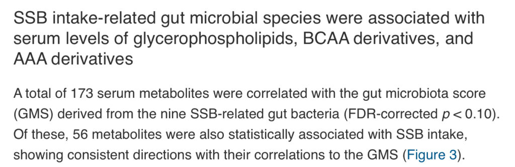 また、砂糖入り飲料の摂取は、56種類の血中代謝物と関連していました。