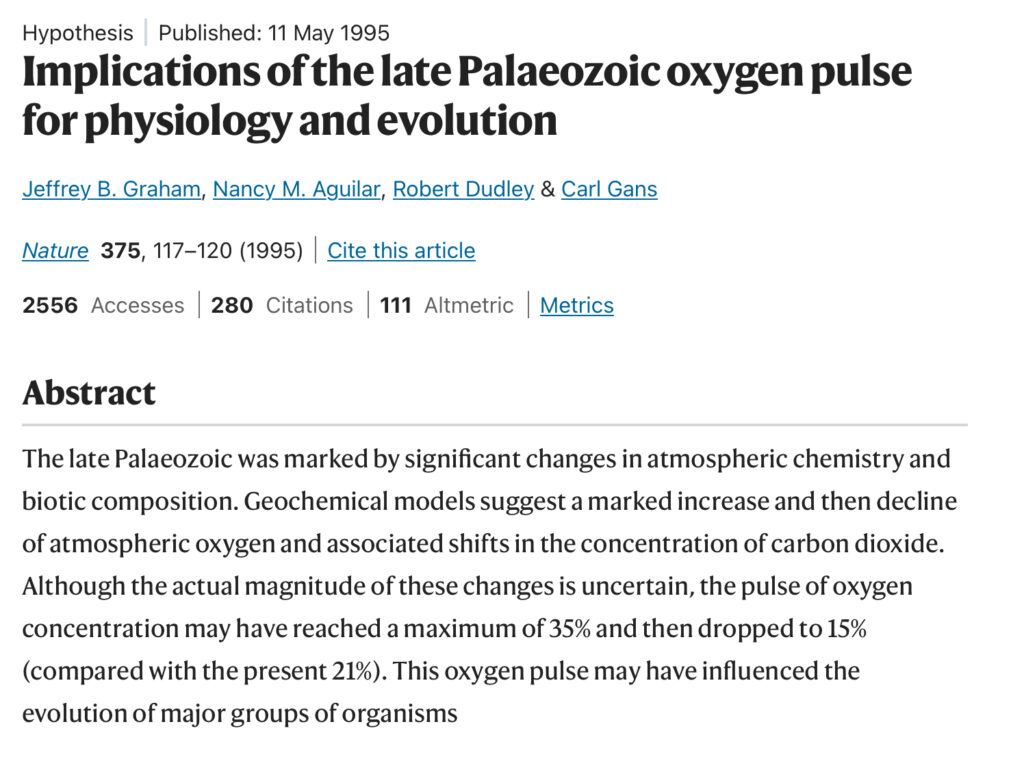1980年代、科学者たちは古代大気の組成を再現する技術を開発し、約3億年前には大気中の酸素濃度がピークに達していたことを明らかにしました。